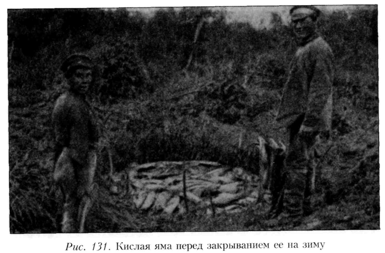 Несколько улучшенным является тот способ, при котором ямы роют в самой реке на отмелях. Благодаря холодной речной воде рыба в таких ямах сохраняется гораздо лучше, и вынимают ее зимой не в виде каши, а целыми рыбами, что собаки явно предпочитают.