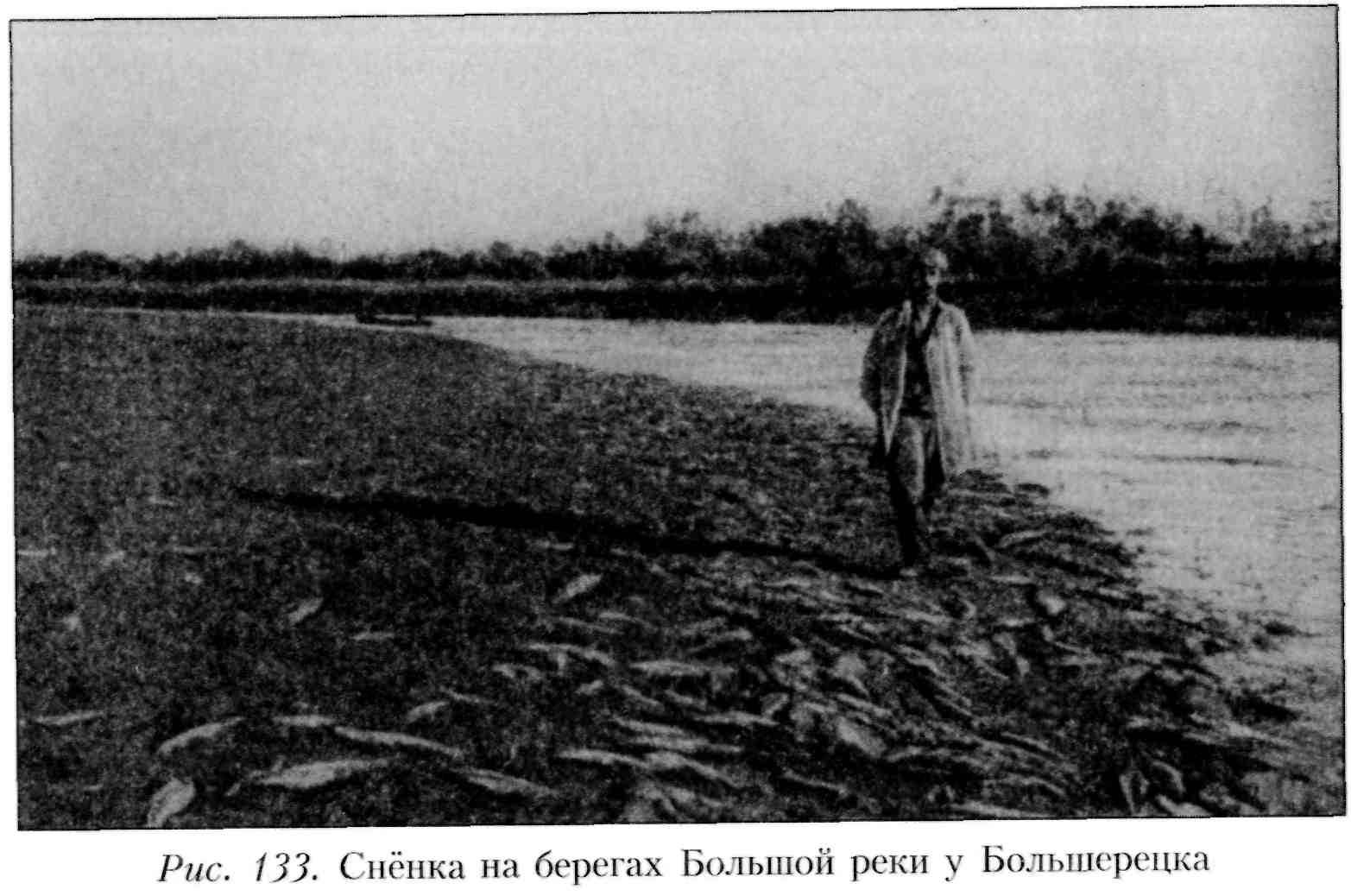Начинается рыболовный сезон ловлей и заготовкой чавычи, а где ее нет – ловлей гольцов; затем идут последовательно ранняя красная, хайко и поздняя красная (иначе "азабач" или "арабач"), горбуша и, наконец, с августа по ноябрь – кижуч. Входит в реки вся эта рыба серебристо-белой, с ярко-красным мясом, но по мере хода или просто по мере пребывания в пресной воде она становится неузнаваемой, челюсти сильно развиваются и клювообразно искривляются, у самцов горбуши вырастает горб; красная и кижуч приобретают снаружи ярко-малиновую окраску, в то время как голова их становится зеленой, а мясо у всех вообще перечисленных только что пород все белеет; кроме того, оно становится дряблым и перерождается, превращаясь в конечном счете в какую-то чуть ли не студенистую массу, безвкусную и непитательную. Все это идет параллельно развитию половых продуктов (икры и молок) и метанию их. Икрометание называется на Камчатке лощанием, а рыба, уже выметавшая икру, "лощалой".