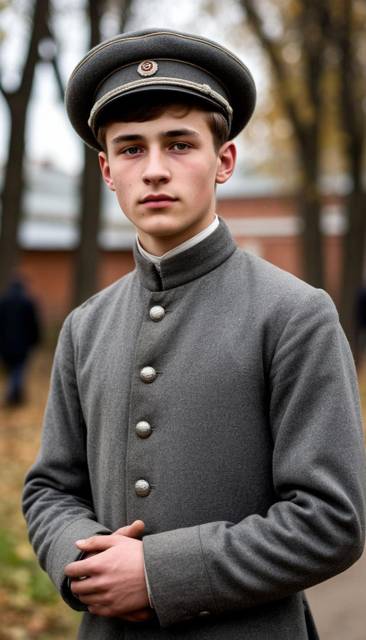 Гимназист в серой форме (она была заметно реже распространена чем синяя)