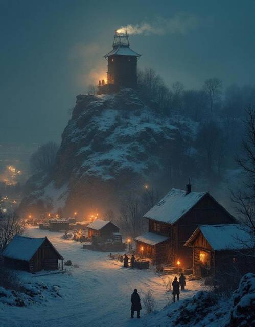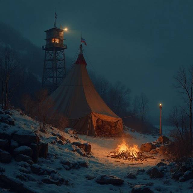 Башня семафора, пользуясь хорошей погодой и видимостью, передавала световые сигналы в ночь. На той стороне замерзшей Луги другая башня ответила, подтвердив приём сообщения.