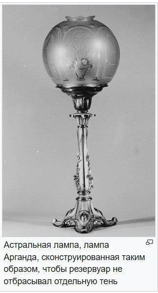 Читать у нас дома все любят. Но со свечами чтение зимними вечерами – похороны глаз. Вот я и вспомнил о «лампах с наддувом» француза Аргада или Арганда. Решив что не стоит его озарения ждать, года полтора назад я «изобрёл» «Астральную лампу». Светит не хуже «лампочки Ильича». Лампа эта уже на моих мануфактурах и в домах.Она и в Зимнем на балах теперь светит.