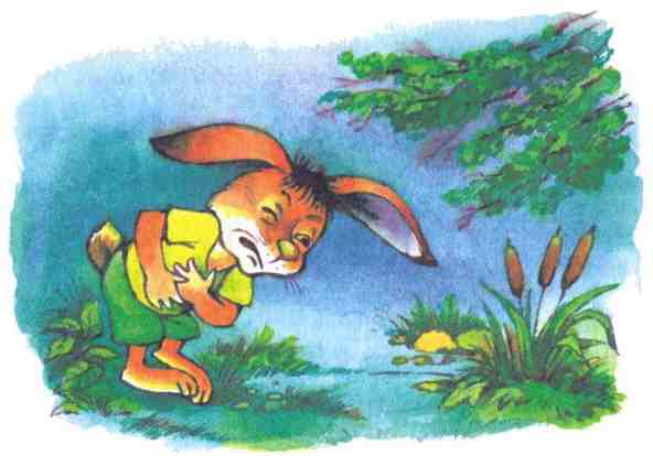 Сосчитал заяц головастиков – нет одного. Сосчитал ещё раз – так и есть, не хватает. И почувствовал заяц Длинные Уши: зашевелилось у него в животе что-то. Так и присел он:
