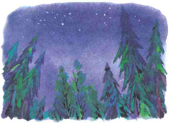 Вдруг заяц сморщился – э-э! – выплюнул разжёванный полынок и побежал к речке. Сел у воды и давай язык мыть. А пока мыл, высыпало на небе звёзд видимо-невидимо.