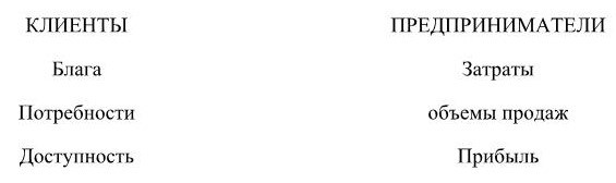 объемы продаж, блага, доступность, затраты, прибыль, потребности