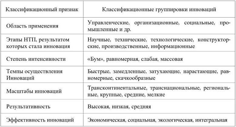 Подразделение инноваций на конкретные группы по определенным признакам называют классификацией инноваций. В практике управления инновациями используют различные классификаторы инноваций.