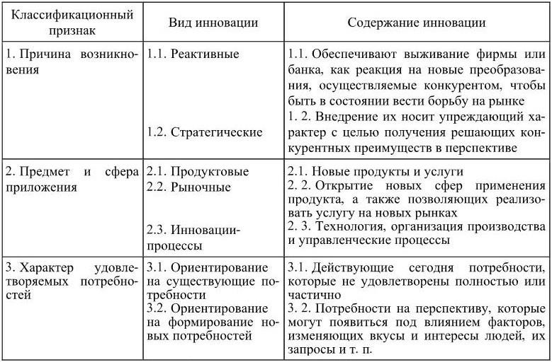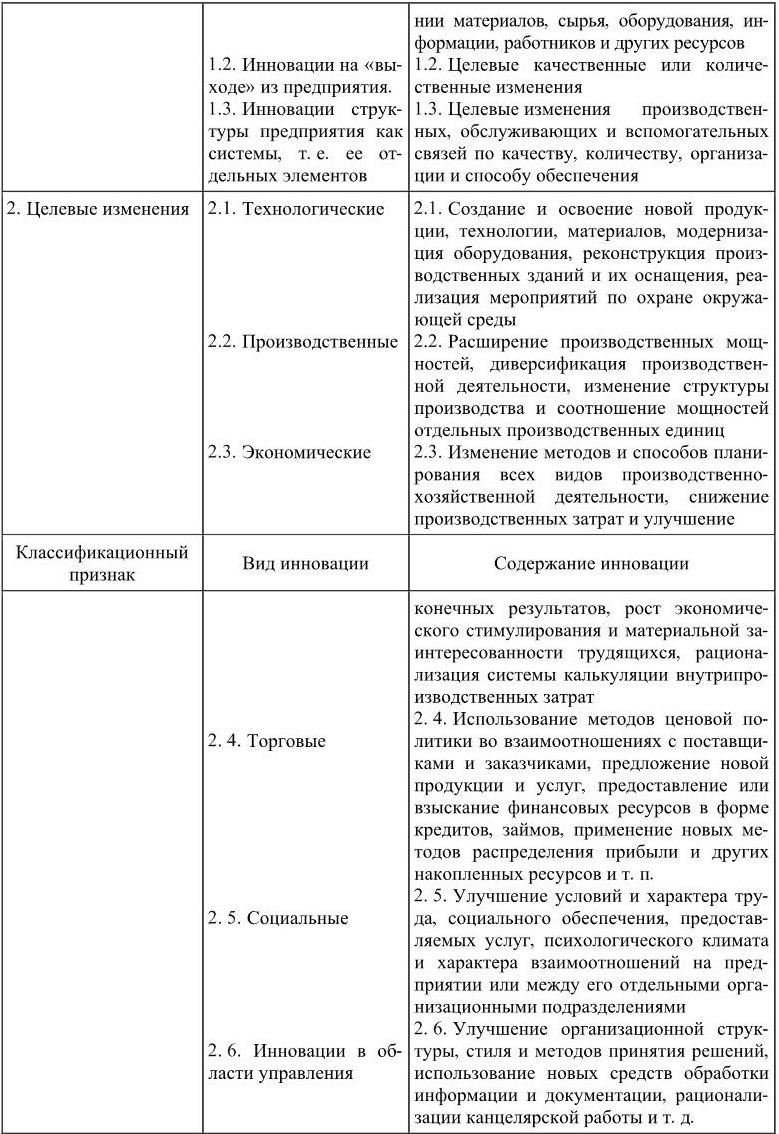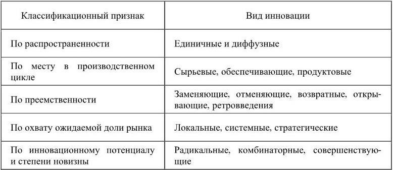 В отечественной литературе по инновациям можно выделить следующие классификации2: