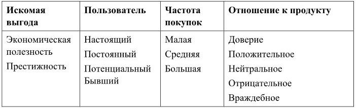 • критерии, характеризующие поведение человека как покупателя, что сильно пересекается с четвертым разделом рассмотренной чуть выше классификации.