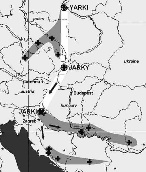 Безусловным является факт переселения носителей «яр»-топонимов на Балканы. Однако не представляется возможным выявить точный маршрут. На основании вышеприведенных результатов рассматриваться могут три варианта: 1) австрийский: это долины рек Влтава – Энс – Купа – Сава – Дунай; 2) альпийский: долина Ваг (Словакия) – восточные отроги Альп – северо-запад Хорватии – Сава – Дунай; 3) долина Ваг – междуречье Дуная и Тисы – Белград.