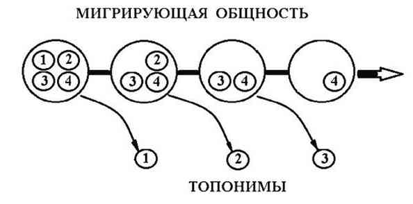 Рис. 8. Образование топонимов при «почковании» мигрирующей общности