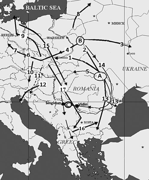 [Закрыть]. Из Македонии в 581 году словене переходят во Фракию (М16) и расходятся по всему полуострову.
