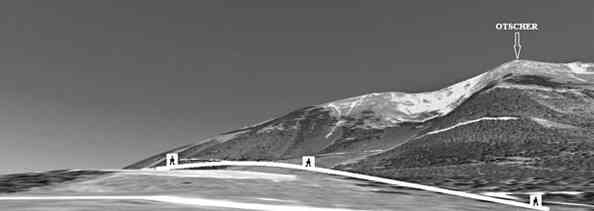 Фото № 3. Переход краковцев через Альпы около вершины Otscher. Слева находится пик Grosserpriel (Картографические данные © 2015 Google)