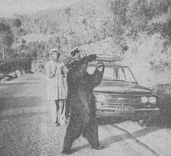 Даже на шоссе гималайский медведь может дать небольшое представление