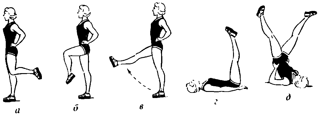 5. И. п. – стойка на лопатках: разведите и сведите прямые ноги в вертикальной плоскости (рис. 43, д). Повторите упражнение до утомления.