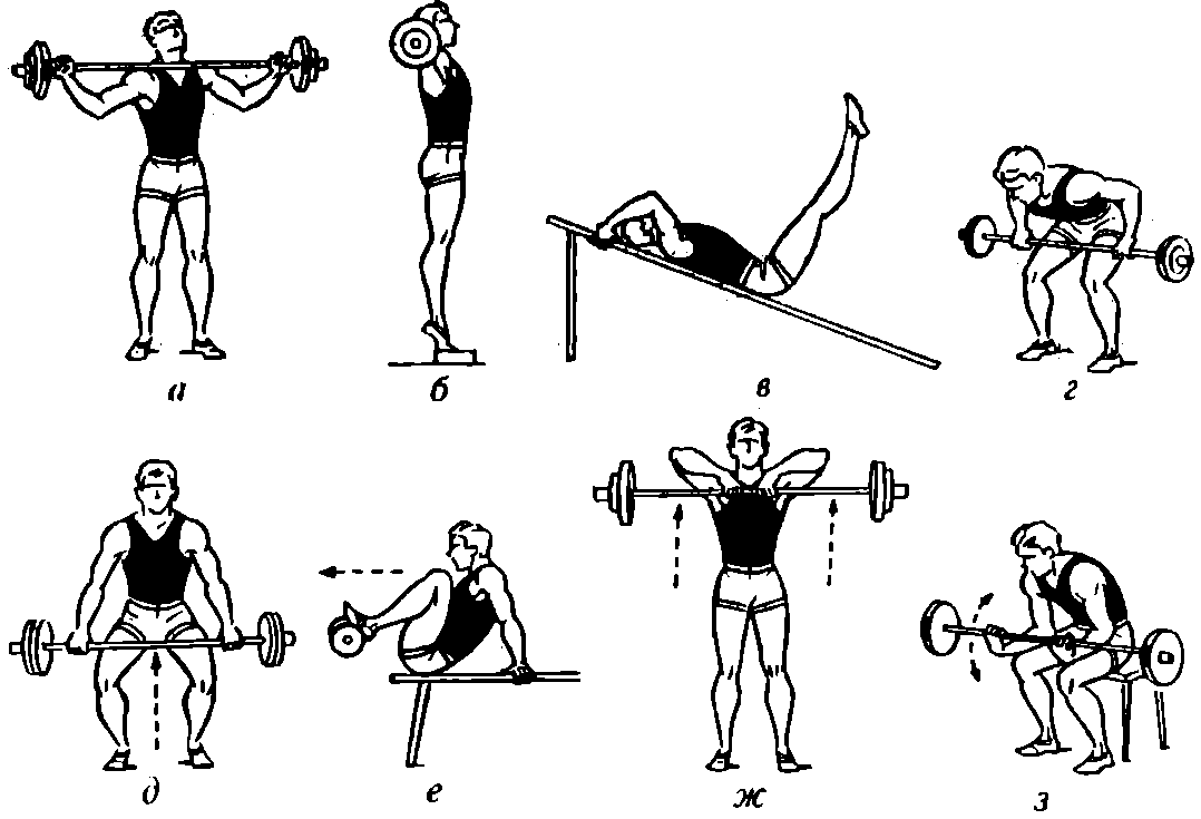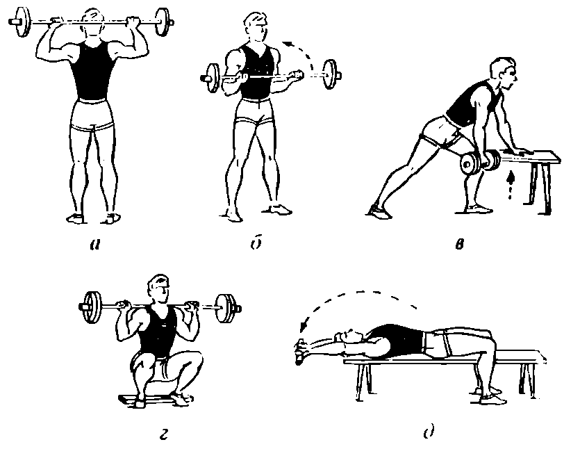 Рис. 10. Комплекс упражнений со штангой и гантелями (II)