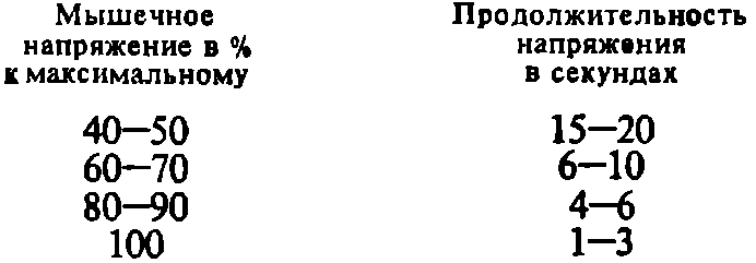 Возможны и другие отношения величины мышечного напряжения и его длительности. Считается оптимальным следующее соотношение между этими факторами: