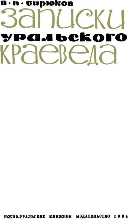 И действительно, занятие фольклором – всего лишь малая доля его разнообразной краеведческой работы. Краеведение понимается Бирюковым много глубже и шире, как область знаний, неотъемлемо связанная с духовной культурой народа, его трудом, борьбой, бытом. И этому полностью отвечает материал новой книги В. Бирюкова «Записки уральского краеведа».