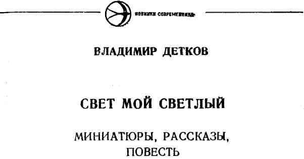 В этой же книге наряду с миниатюрами присутствует и крупная по объему прозаическая форма – повесть «Три слова». Не мешают ли они друг другу – малое и большое, не нарушают ли своим соседством целостности книги? На мой взгляд, нисколько! В микро– и макропрозе Владимира Деткова много общего, родственного, органического, и прежде всего – присутствие все того же одухотворенного, взволнованного раздумья над сущностью бытия. Многие мысли и чувства, питающие его миниатюры и представляющие как бы разноцветные осколки нашей повседневности, в повести организованы и вмонтированы в большой художественный витраж с пространственно развернутым отображением человеческих судеб.