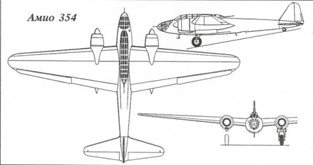 Для того, чтобы завершить рассказ о бомбардировщиках «Амио» до перемирия, следует упомянуть о нескольких опытных образцах. Амио 351-01, первый из самолетов, собранный как военный и завершивший испытания в СЕМА в сентябре 1939 г, был переделан в четырехместный разведчик и получил опять однокилевое оперение. В декабре он превратился в Амио 351– 01А4. Как таковой его передали в группу стратегической разведки GRS1/33 в Мартиньи-ле-Жербонво для войсковых испытаний и сравнения с самолетом Потэ 637A3. Уже в январе 1940 г. его повредили при взлете в Нанси и вернули в Коломбэ для ремонта. Его собирались передать «Эр Франс» в качестве скоростного курьерского самолета, но не успели – машину захватили немцы. Его возможности как разведчика не вызывали большого воодушевления в GRSI/33.