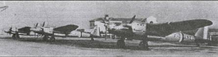 Базировавшиеся на аэродроме Ша– тоблан в Авиньоне бомбардировочные группы GBI/21 и GBII/21, ранее летавшие на Блок 210, начали получать Амио 354 в апреле 1940 г. К 10 мая, первому дню немецкого наступления, они имели соответственно шесть и две машины. В Монбаре группа GBI/34, вооруженная Амио 143, тоже начала переходить на новую технику в апреле. К 10 мая у нее было пять самолетов. На эту же дату 14 машин числились в испытательных центрах (СЕМА, СЕАМ) и учебном центре бомбардировочной авиации (CIB). Три были неукомплек– тованы, два находились в ремонте и один списан как полностью разбитый, началась сборка двухкилевых Амио 351 – с этого момента поставлялись самолеты только этого типа. Их номера начинались с № 56 (по неизвестным причинам числа от 41 до 55 пропустили).