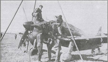 Ремонт в полевых условиях MB 152, получившего повреждения в бою с Bf 110