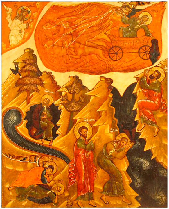 Илья-Пророк на его небесной колеснице. Икона XV в.