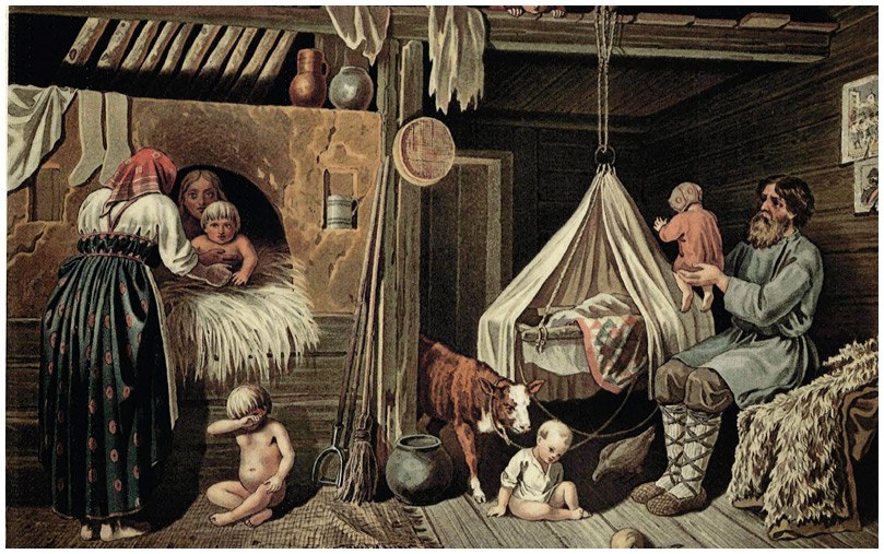[Закрыть]. По обычаю, принятому в Новгородской губернии, прежде чем открывать дверь в хлев, следует кашлянуть – если же зайти внезапно, то можно «помешать домовому» или увидеть его, что могло повлечь за собой несчастье[659]659