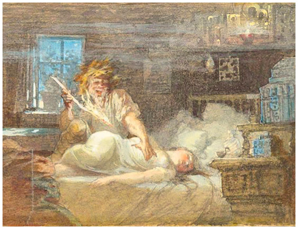 Крестьянин и домовой. Рисунок Сергея Чехонина. 1922 г.