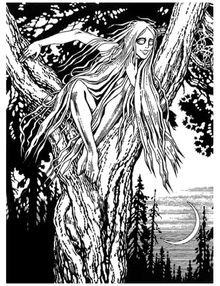 [Закрыть]. Согласно сообщению из Калужской губернии, русалки «живут в лесах, избирая себе приютом старые деревья, особенно дубы, качаются на сучьях»[1302]1302
