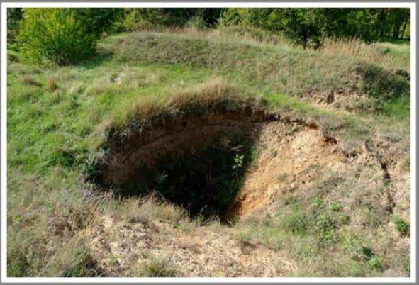 Этот провал в Маячанской балке указывает на наличие под землей пустоты