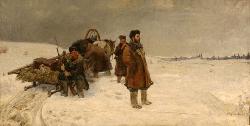 И. В. Сталин на пути в Туруханский край. Художник Кульчоро Керимбеков