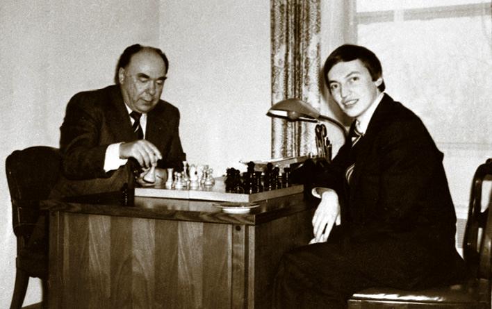 Однажды довелось сыграть партию с чемпионом мира Анатолием Карповым. [Из архива Л. Шерстенникова]