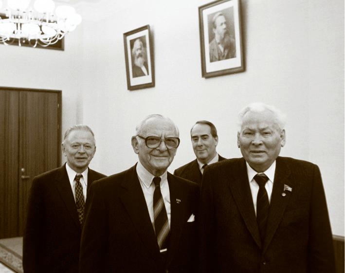 Визит Арманда Хаммера в СССР К. У. Черненко, президент и председатель Совета директоров компании «Оксидентал петролеум корпорейшн» А. Хаммер и помощник генсека по международным вопросам А. М. Александров-Агентов во время встречи в Кремле. 4 декабря 1984. [ТАСС]