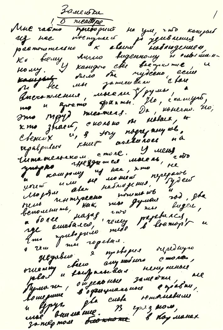 Статья А. Н. Яковлева «Заметки. О театре». [ГА РФ. Ф. 10063. Оп. 1. Д. 464]