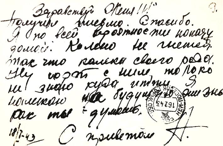 Письмо А. Н. Яковлева о своем ранении и возвращении домой. 18 января 1943. [Из личного архива А. Н. Яковлева]
