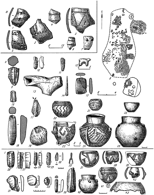 Рис. 3. Материалы культуры линейно-ленточной керамики.