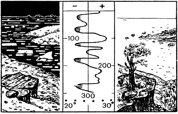 В общем, эти данные совпадали с материалами, накопленными при изучении суши. Оледенения, конечно, существенно влияли на температуру воды в океане. Во время оледенений она заметно падала.