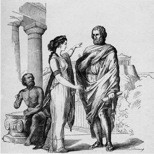Софокл, Ксенофонт, Еврипид, Фидий и другие великие греки, входившие в кружок Перикла, приходили насладиться искусством красноречия красавицы из Милета. Аспазия обучала ораторскому искусству и умению рассуждать Сократа, который был на год моложе ее и под влиянием прекрасной куртизанки раздумал продолжать дело отца. Именно Сократ привел Перикла в дом Аспазии. Знаменитый афинский стратег не был счастлив в семейной жизни. К сорока четырем годам он разошелся с женой, но сыновья оставались при нем. Аспазия была красива, обладала завораживающим голосом и необыкновенным умом. Любовь оказалась взаимной.