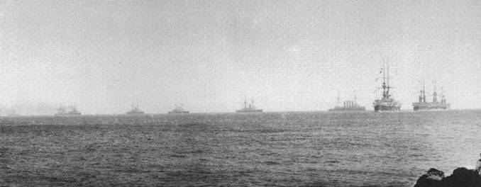 На броненосцах нанесли новые марки на трубах – на “Трайомфе” были белые, низко расположенные.