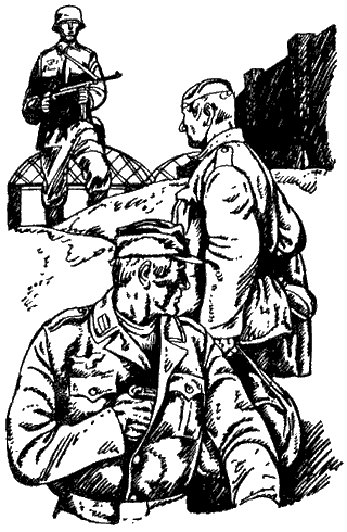 Рассвело. Они вышли на площадь: Аскер, высокий, широкоплечий, тонкий в талии; Ланге – ниже ростом, грузнее, с сильными округлыми плечами, чуточку кривоногий; оба в поношенных военных мундирах, Ланге – с погонами обер-ефрейтора, Аскер – капрала, оба с брезентовыми ранцами и шинелями через руку. Узнать Ланге было бы трудно – небольшая бородка, усики с закрученными вверх концами, тёмные очки совершенно его преобразили.