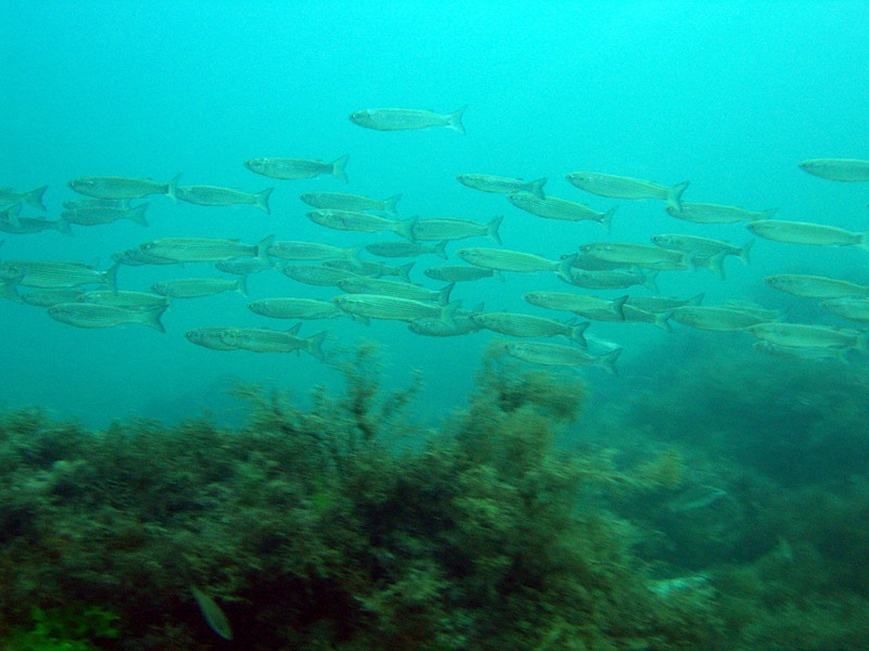 Во вреия работы на КНП, на высоком обрывистом берегу, я с любопытством наблюдал, как стайки кефали непрерывно двигались в поисках пищи. Они стремительно ныряли с поверхности воды на грунт, заглатывая обнаруженных ими моллюсков, и вновь поднимались наверх. Иногда задерживались на грунте, обгладывая обрастания на камнях. Стая постоянно следовала за вожаком, обычно более крупной рыбы, синхронно повторяя его движения. Как только вожак, увидев что-то съедобное на грунте, покидал стаю, его место занимала другая крупная рыба. Иногда стая сбивается в темный густой шар, крутясь на одном месте и что-то высматривая. Но затем, вдруг вытянувшись шнурком, устремлялась вперед. Если вожак при испуге резко замедлял ход, вся стая смешивалась, разделяясь на мелкие стайки, даже выпрыгивала из воды, но затем, снова соединяясь в клубок и, повторяя движения вожака, следовала за ним.