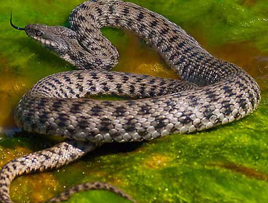 Живет наш родной ужак обычно на берегу моря среди камней, а в воде он охотится на рыб. Имеет пристрастие к толстеньким и вкусным бычкам. Как рассказывал мне один рыбак, он как-то поймал на удочку бычка – кругляшка, вместе со змеей, которая вцепилась в него и не хотела выпускать из пасти, пока не подвел ее к самому берегу. По описанию, я понял, что это был наш водяной уж. У него темные шашечки на спине, а в летний период цветное брюшко. Не гоняйте его и ни в коем случае не убивайте. Он вам никогда не сделает зла. Дайте ему возможность наслаждаться своей змеиной жизнью вместе с вами в нашем благословенном Крыме.