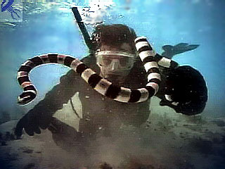 В отличие от наземных ядовитых змей, морские змеи гораздо агрессивнее. Незадачливому аквалангисту, да и просто пловцу, встреча с ними грозит большими неприятностями.
