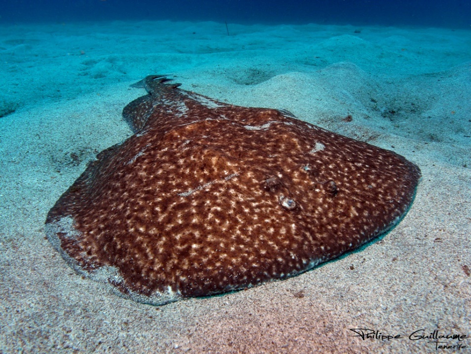 Длина его достигает двух метров, вес 100 кг. Этот скат уже чрезвычайно опасен для человека. Он может вызвать временную потерю сознания человека, парализовать, а возможно, и убить. Достоверных случаев не зафиксировано, но былей о несчастных случаях много. Трудно отделить правду от вымысла. От выловленных нами электрических скатов в тралах, ощущался удар током, что вызывало весьма болезненные ощущения, даже если его непосредственно руками не трогать.
