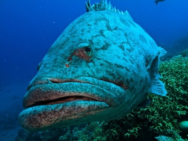 С гигантом прибрежных водах Индийского океана групером или мероу, как чаще называют экологи и рыбаки гигантский каменный окунь, я впервые встретился в водах коралловых рифов Сейшельских островов. В поисках экзотичных раковин в одной из подводных прогулок, я пытался выдернуть из расщелины между глыбами камней железной корабельной свайкой спрятавшуюся там раковину-жемчужницу. Казалось, именно в ней затаилась “роса моря”, как называли жемчуг древние греки. Ведь сбываются у кого-то мечты. Несмотря на все мои усилия, жемчужница не поддавалась. Только скрежет от свайки, с помощью которой я пытался поддеть раковину, эхом отдавался у меня в ушах. По-видимому, я попал на чужую территорию и шум от моей работы потревожил его хозяина, так как неожиданно из-за коралловой гряды показалась чудовищная голова с открытой массивной пастью, а затем медленно выдвинулась непомерно колоссальная туша, как мне показалось, около трех метров длиной. Впрочем, сквозь стекло подводной маски размеры подводных объектов, как правило, превышают их реальные величины. Но в данном случае рыба действительно была преогромная.
