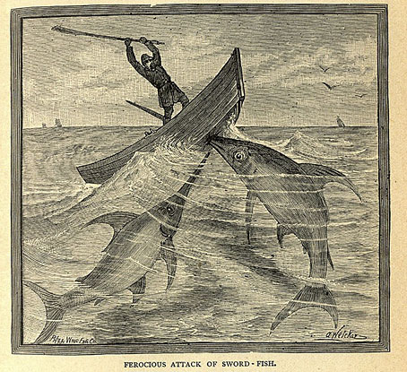 Считается, что рыба-меч агрессивна и непредсказуема. Своим мечом она может пронзить даже лист железа толщиной более 1 см. От удара меч-рыба не страдает, если не потеряет свой меч. У его основания находятся жировые амортизаторы, то есть лопасти, заполненные жиром, смягчающим силу удара.