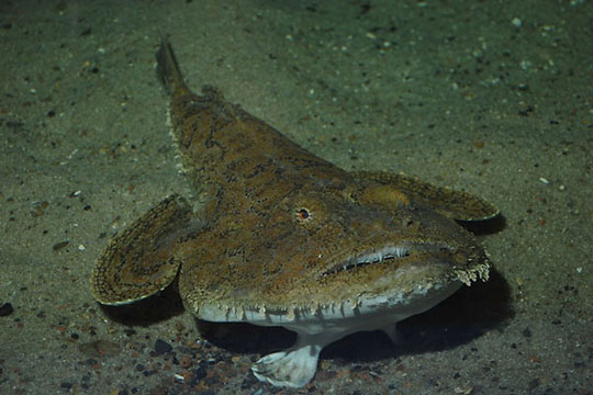 Рыба периодически раскрывала огромную пасть с многочисленными острыми, как иголки, зубами, временами хрипела, а с губ, словно ленты свисали и болтались кожистые клочья кожи. Что ж тут удивительного, что это чудовище назвали “морским чертом”. Вот только рогов и копыт у него нет. Грудные плавнички у него расширены словно лапти – ласты, с помощью которых он может не только плыть, но и “ходить пешком”, отталкиваясь от грунта, легко подпрыгивая и незаметно подкрадываясь к жертве. Измерив и взвесив это страхолюдное морское чудо, пыхтящее от негодования, я выпустил его на свободу.