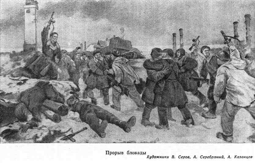 Гитлеровцы отчаянно сопротивлялись, но войска Ленинградского и Волховского фронтов (командующие генералы Л. А. Говоров и К. А. Мерецков) упорно, километр за километром, продвигались навстречу друг другу. К вечеру 14 января передовые части обоих фронтов разделяло всего два километра. Но только 18 января войска встретились: каждый метр пришлось брать с бою. В ходе прорыва блокады был впервые захвачен опытный образец немецкого тяжелого танка «тигр», проходившего здесь испытания. И когда летом на Курской дуге фашистское командование пустило в ход «тигры», против них имелось надежное оружие.