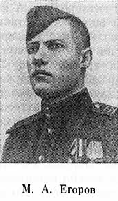 Утром 30 апреля развернулся бой за рейхстаг. Роты старшего сержанта И. Я. Сьянова, лейтенанта П. А. Гринченкова и взвод сержанта И. Н. Лысенко (все подразделения из 150-й стрелковой дивизии) первыми ворвались в здание рейхстага. Вскоре на колоннах, в бойницах на лестницах, в окнах заалели самодельные флаги, которые несли П. Н. Пятницкий, сраженный на ступенях здания, П. Д. Щербина, Р. Кошкарбаев и другие воины. В боевых порядках находилось и знамя Военного совета армии. Это знамя было доверено разведчикам сержантам М. А. Егорову и М. В. Кантарии.