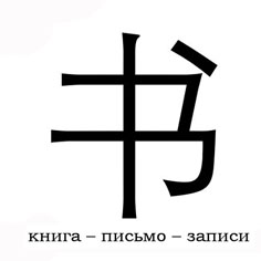 Специфика древнекитайского языка, где преобладали односложные слова, и административное деление Древнего Китая на отдельные царства, говорившие на собственных диалектах, способствовали тому, что китайская иероглифическая письменность оказалась удобным средством междиалектного общения. Знак, передающий на письме слово, мог быть по-разному произнесен на различных диалектах китайского языка, но смысл текста понимался правильно. В результате китайская письменность постоянно развивалась и является единственным в мире последовательным иероглифическим письмом, эффективно действующим и в настоящее время. Вот для примера китайский иероглиф «книга».