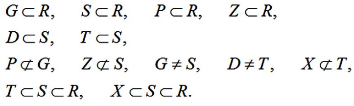 Применительно для ранее введенных буквенных множеств можно написать следующие утверждения: